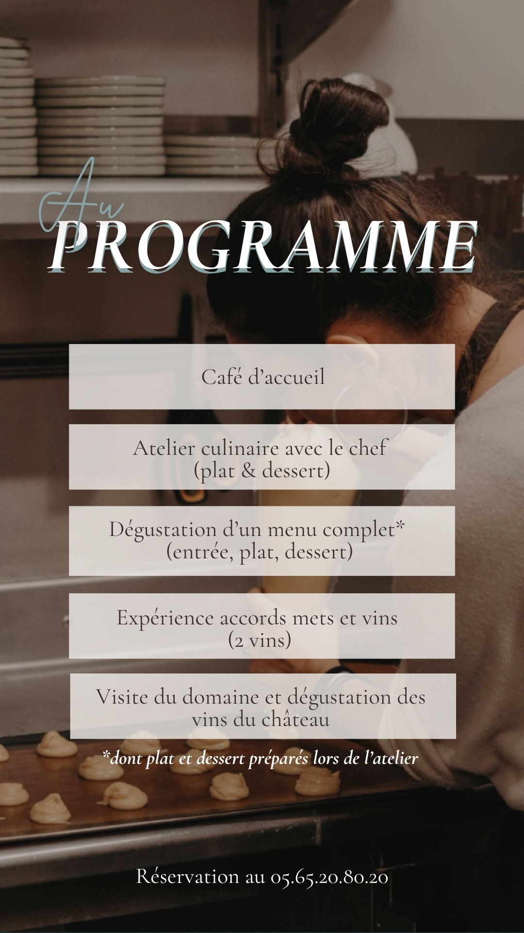 Le temps d’une demi-journée, laissez-vous transporter dans l’Art de Vivre Malbec. En immersion dans les cuisines de la Table Vigneronne, le Chef cuisinier et le chef pâtissier dévoileront leur savoir-faire, et partageront leur passion pour la gastronomie et les trésors du terroir lotois. À leurs côtés, apprenez à cuisiner et pâtisser des recettes signature en toute convivialité.